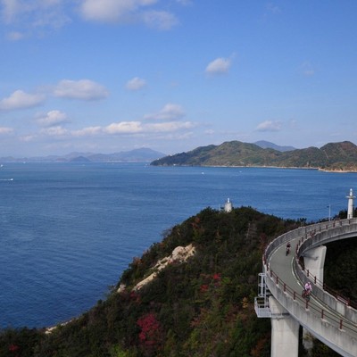 『島々の風景・町並み』しまなみ海道のサイクリングは、まるで海の上を走っているかのような気持ちよさがあります。
