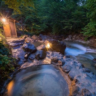 天然の川床を利用した自噴泉甌穴岩風呂、渓流沿いに位置する露天風呂がオススメです。