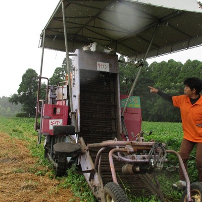 ■サツマイモの定植 サツマイモの苗を機械に乗って植える作業 楽しいです(ゴーカートのような四輪車に乗りながらの作業になります。免許などはなく経験がなくてもできる仕事ですのでご安心ください)