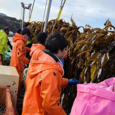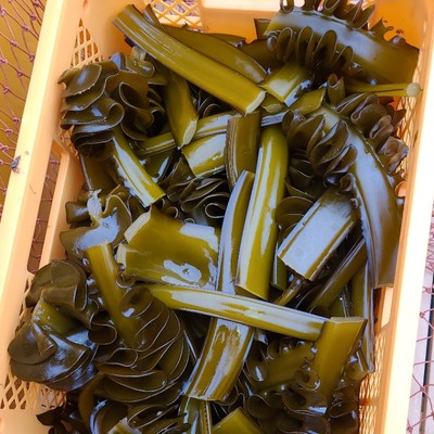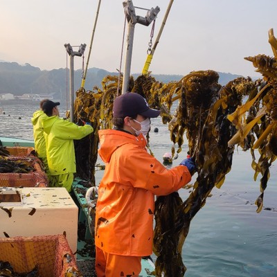 この時期最盛期を迎えるわかめ、めかぶの収穫・メカブ削ぎ・出荷作業などのお手伝いをお願いします。