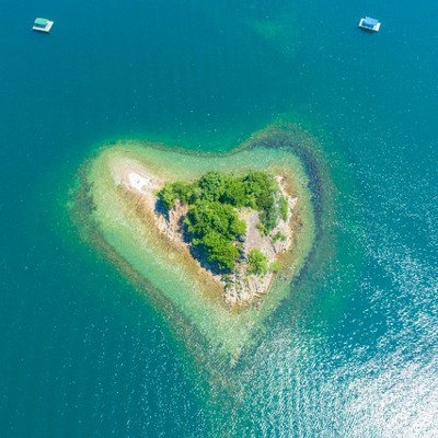 ウチノ海等の絶景スポットを一望できる鳴門スカイラインの途中にある四方見(よもみ)展望台からは、上空から見れば、ハートの形に見える無人島の鏡島を見ることができます。