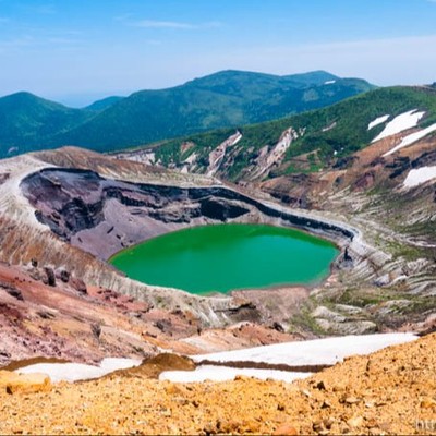 蔵王の絶景「お釜」は、山形を訪れたら必見!エメラルドグリーンに輝く火口湖は、四季ごとに表情を変え、心奪われる美しさ。毎年GW~11月3日まではお釜まで続くエコーラインも通行可能。