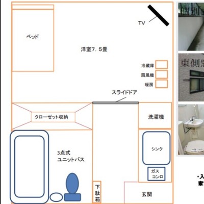 玄関・キッチン(一口コンロ)・洗濯機(備付)