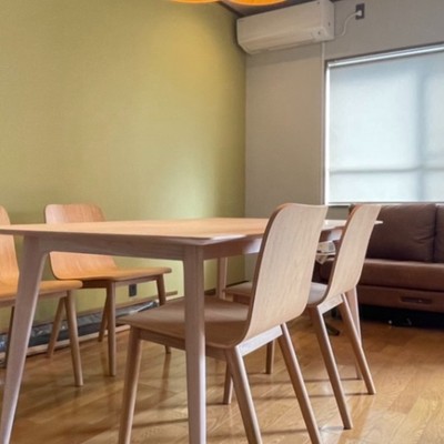 【一人部屋タイプのお部屋】ダブルベッドとワーキングデスク、ワーキングチェアつきのお部屋+キッチン&ダイニング(プロジェクターと大型スクリーンあり)+乾燥機つき洗濯機つきです。