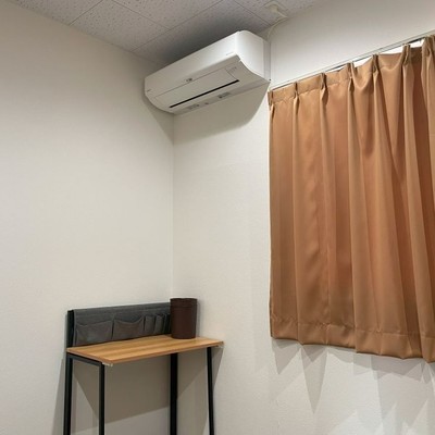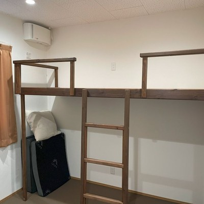 6畳の個室にロフトベッドがあります。全室エアコン完備です。