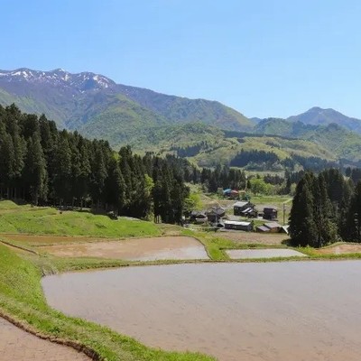 日本の棚田百選「北五百川の棚田」:三条市北五百川地内にある棚田は、栗ヶ岳の裾野に位置し、日本の棚田100選にも選ばれています。守門岳をはじめとする遠くの山々と人家が美しく、新潟県景勝100選の八木ヶ鼻をはじめ、高城城址、袴腰山、粟ヶ岳とこれらの山々を結ぶブナの道が整備されています。