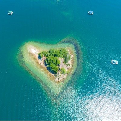 ウチノ海等の絶景スポットを一望できる鳴門スカイラインの途中にある四方見(よもみ)展望台からは、上空から見れば、ハートの形に見える無人島の鏡島を見ることができます。