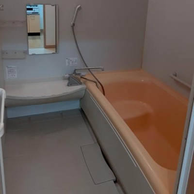 浴室。宿舎から車で10分の場所に日帰り入浴の出来る温泉もございます。