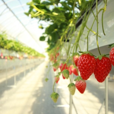 伊豆は静岡県を代表するイチゴの生産地で、12月中旬~5月初旬のシーズンには各地でいちご狩りやいちごのスイーツなどが楽しめます。栽培している品種は主に「紅ほっぺ」「章姫」「きらぴ香」の3種類。それぞれの味の違いをぜひ食べ比べてみてください。