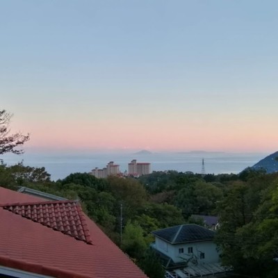 ・天城山の中腹にある宿です。海が眺められて空気もすこぶるおいしいですよ。(まかないもおいしいよ)