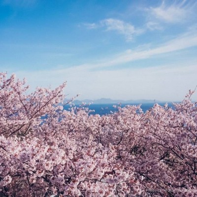 不知火海沿岸は、桜の名所!3月下旬から、桜と海のコントラストが見事です。