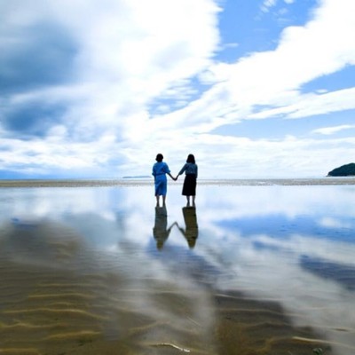 人気の父母ヶ浜は車で15分。周囲にはカフェなどもあり、休日は多くの人でにぎわっています。