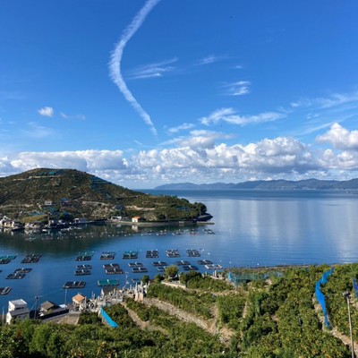 八幡浜では山全体に広がる段々のみかん畑、そこから見える雄大な海の景色を同時に味わうことができます。