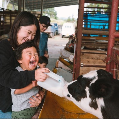 宮崎県新富町で、家族で酪農をやっています。私たちは牛乳のおいしさと『命の循環』を伝えたい!と、「ノンホモ牛乳」という低温殺菌した牛乳づくりや、その牛乳を使ったソフトクリーム屋さん、1日1組限定の牧場体験などにチャレンジしています。