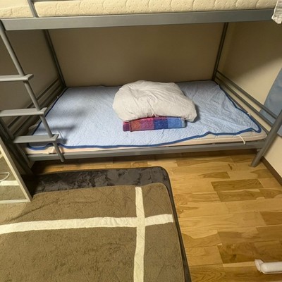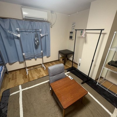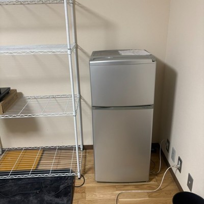 自室に冷蔵庫を配備しています。共用電子レンジが室外にあります。