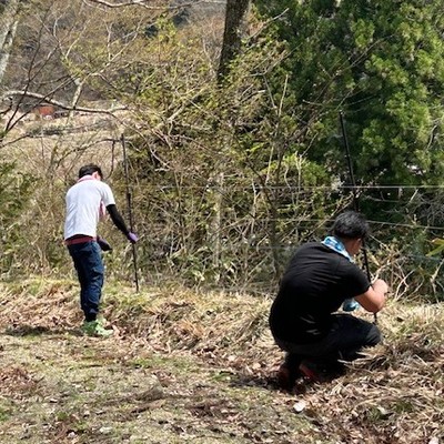 びわ湖の源流 水源の里 米原市甲津原。田んぼの周りの防護柵の撤去・片付けを行うおてつたび