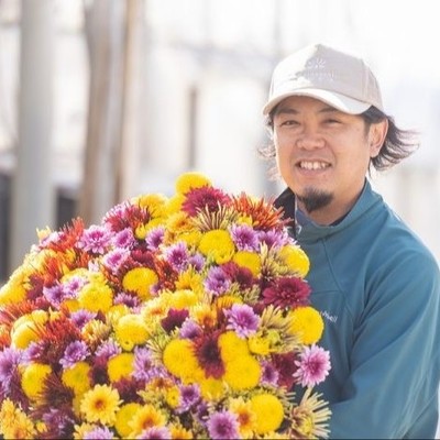 鹿児島市出身。結婚を機に就農しました。結婚前は美容師で、農業に対するイメージが全くなかったことがかえって良かったと思います。現在は家族と従業員、技能実習生の総勢18名で施設園芸(菊の栽培)に取り組んでいます。枕崎が菊の産地であることを皆さんに知ってもらうために頑張っています。