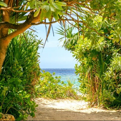 ビーチサイドガーデン:南国ムードたっぷりの花や樹木の中、ゆったりと散策をお楽しみください。