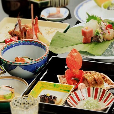 当館のお料理は、アンケートでも高評価をいただいており、全部屋庭園を望む料亭浮城や大小宴会場、料理茶屋でご提供しております。