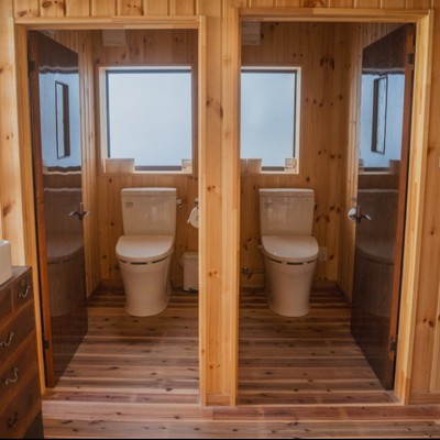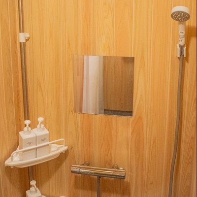 シャワールーム×2部屋。湯船に入りたい場合は市内の温泉施設をご案内させていただいています。