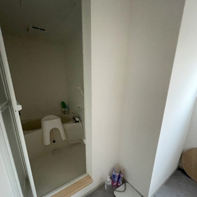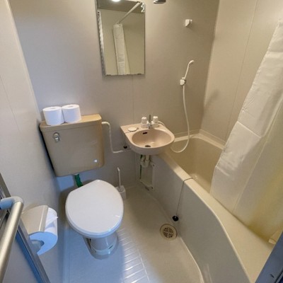 写真は女性用寮のお部屋内のユニットバスとなります。男女共有寮にも同等機能でございます。