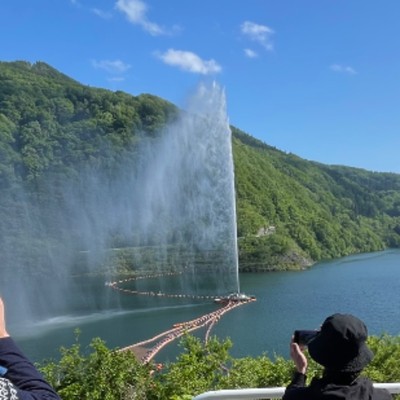 月山大噴水。噴水の高さはなんと◯◯◯m!