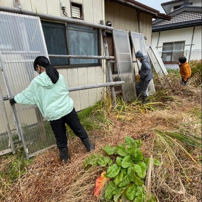 - 町民のお困り事解決で、屋内・屋外で依頼された仕事をやります。基本的に汚れてもいい服、プライベート時間についてはご自身にお任せします。
