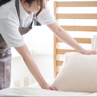 ベッドのシーツ交換や、トイレ・浴室の清掃を担当します。