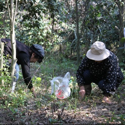 ・椿の種の収穫作業をお願いします。収穫は数名で行います。
