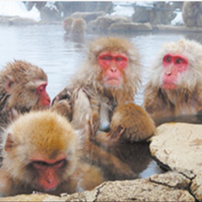 地獄谷野猿公園(車30分):志賀高原一帯に棲息する野性猿が、集団で入浴することからすっかり有名です。