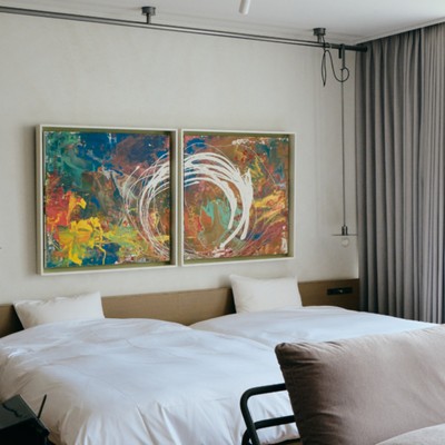 宿泊客が泊まるお部屋は、現代アートが混在するデザインに◎