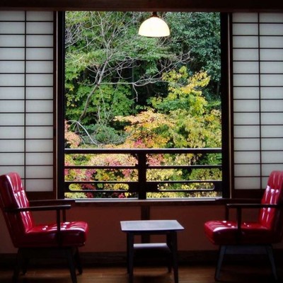 館内は大正ロマンの趣が漂う落ち着いた空間で、どのお部屋からも清らかな川の流れを眺めることができます。