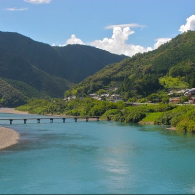 四万十川に掛かる欄干のない沈下橋です。その中でももっとも有名な沈下橋の一つ「岩間沈下橋」が最寄りの沈下橋です。