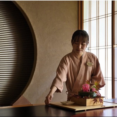 ・私たちは高級旅館のスタッフとしての自覚を持ち、全員が立ち居振る舞いや障子の開け閉めなど、徹底したマナーを身に付けています。また、お客様からの様々なご要望に可能な限りお応えするため、当館では接客や業務に決まりきったマニュアルを用意していません。お客様の求めるものを伺い、察し、そっとご提供する。そんな極め細やかなサービスを徹底し、「心のやすらぎ」の提供の中核となる日本文化「おもてなし」の伝承・発信を我々の使命と考え、全スタッフが一丸となり、より良い旅館づくりを目指しています。滞在やお仕事の中で、そういった心遣いを学ぶ機会にもなると思います