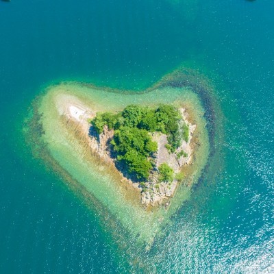 ウチノ海等の絶景スポットを一望できる鳴門スカイラインの途中にある四方見(よもみ)展望台からは、上空から見れば、ハートの形に見える無人島の鏡島を見ることができます。