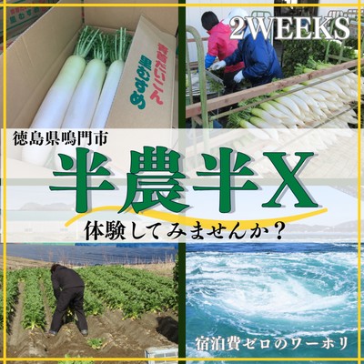 ・世界最大級の渦潮が有名な四国の玄関口「徳島県鳴門市」では、家庭菜園、アルバイト、兼業等農業を生活に取り入れながら、農業以外の仕事、ライフワーク、得意なことといった、自身のライフスタイルに合わせたX(=天職)で世の中に貢献する新しい生活様式「半農半X」を応援しています。