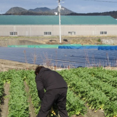 ・作業するエリアは「里浦町」という場所です。最上級の鳴門金時「里むすめ」を生み出す土壌を活かして、冬季は青首だいこん「里むすめ」を生産しています。大手海岸からの潮風が気持ちよく、サイクリングやジョギングには最適なエリアです。