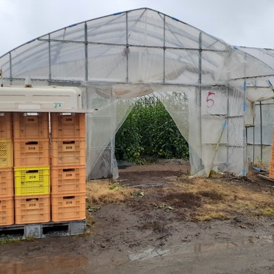 トマトの収穫がメインです。ハウスカートにコンテナを乗せ、一個一個手でもぎ取りハサミで軸を切り落としてからコンテナに入れていきます。1コンテナ20kgくらいになります。色や形状、大きさなど細かい規定がありますが、丁寧に指導するのですぐ慣れると思います。