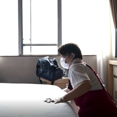 →客室でのゴミ回収やベッドメイキング、掃除機掛け、はたき掛け等清掃作業全般