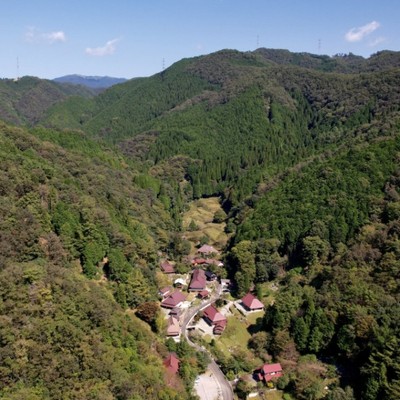 →林道を抜けた先に位置するglaminka SAYOでは、大自然に囲まれながら、田舎暮らしを満喫することができます。