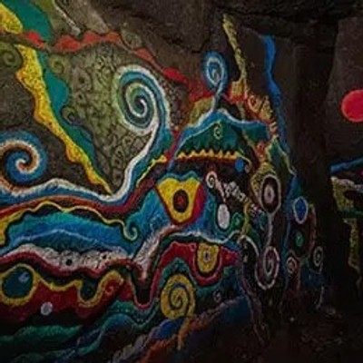 熊襲の洞穴-くまそのあな:(現在がけ崩れのため立ち入りできません💦)石原荘の西側200mの山の斜面。日本神話の舞台として知られており、天井や壁をキャンパスに、さまざまな動物や抽象的な絵柄が描かれています。