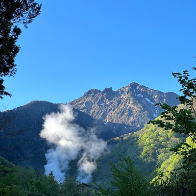 宿から見える北アルプス焼岳