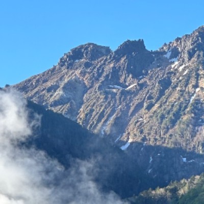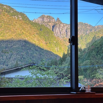 宿から見える北アルプス錫杖岳