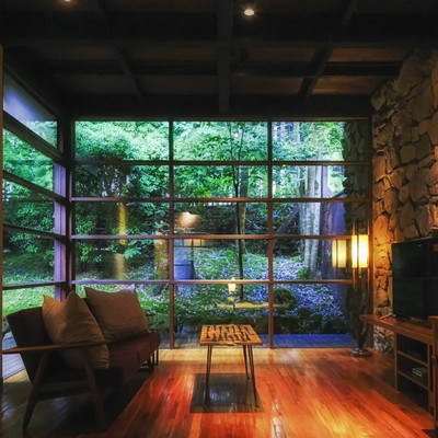 由布院の森の中に点在する離れ、ギャラリー、バー、蕎麦屋、ショップ