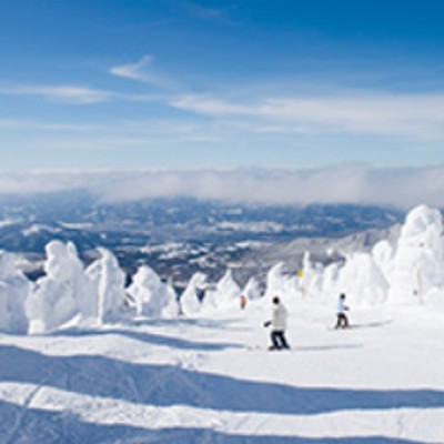 夏は蔵王のシンボル「御釜」、冬のスノーシーズンは「樹氷」が有名で