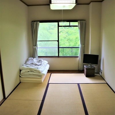 バス・トイレ一体型ユニットバス、TV、カーテン、エアコン、冷蔵庫、布団1組