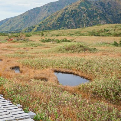 ホテルから歩いて2~3分。立山黒部アルペンルートにある国際的に重要な高原湿地です。約3000個の小さな池のような池塘(ガキの田)が点在し、独特な景観を形成しています夏: 高山植物の花畑が広がります。秋: ナナカマドの紅葉が美しく、大高原が黄・橙・赤に染まります。春: 残雪期には山スキーやスノートレッキングが楽しめます。