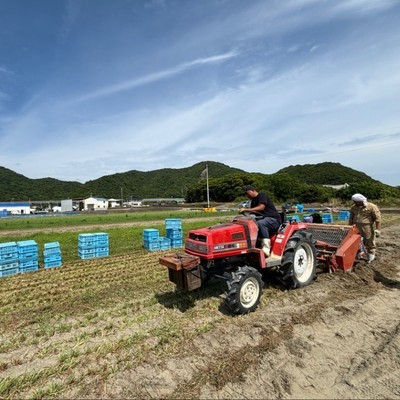 ・トラクターで収穫したらっきょうが入ったコンテナの交換作業等