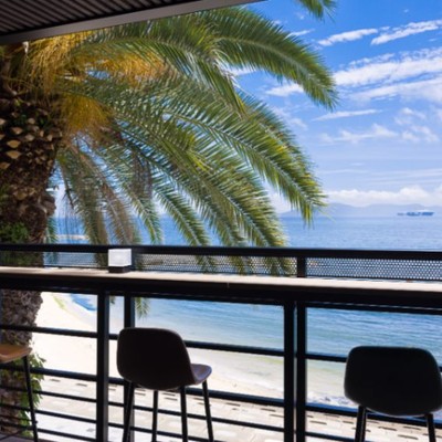 銀波荘すぐ近くのガマフォルニア。カリフォルニアに似ていることから名づけられました。車やバイクの好きな方が、愛車と写真を撮る映えスポットとして人気があります。南国感のあるシーサイドロードは非常に気持ちが良いですよ!