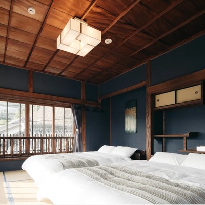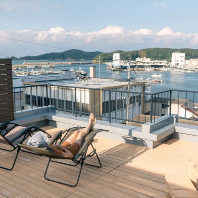 勝本港のすぐそばに佇む LAMP壱岐 は、築約100年の木造の旧旅館をそのままに活かした和モダンな宿。